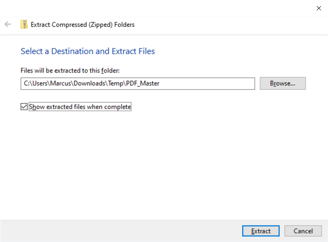 Select a destination to extract your files to. You can delete this folder once this installation is complete.