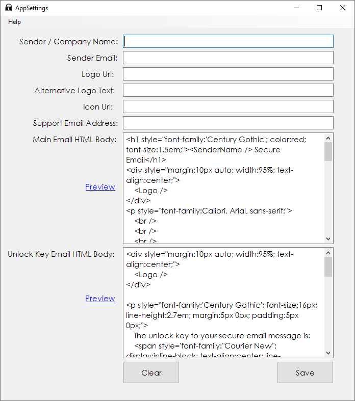 The AppSettings window will open where you can customize your email templates.
